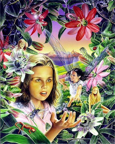 This is the first cover in a series called The Fairy Diaries, which will be available in May 2001 from Grosset and Dunlap. I painted these big, 30" x 40" so that I could put all the detail in. Click the Zoom button to see a close-up.