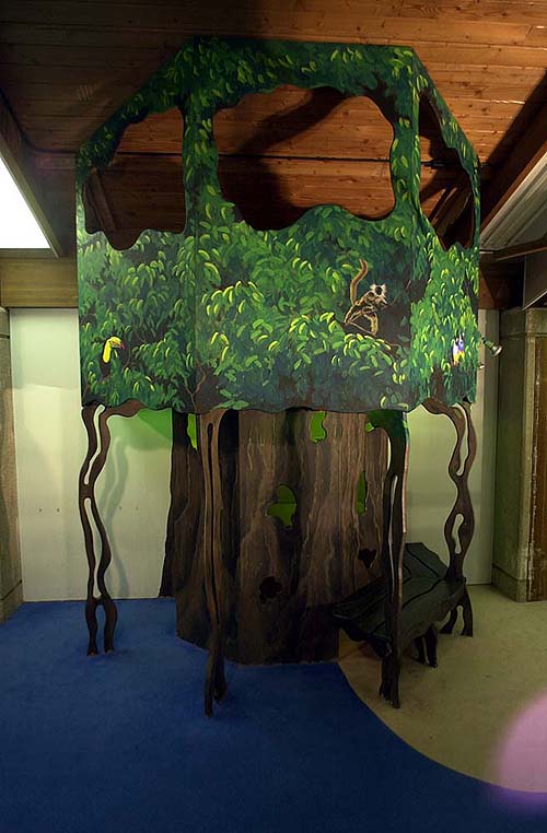 This tree-house is part of the Wonder Wing, an interactive habitat for children 4 and under at the Monmouth Museum. To see close-ups, click