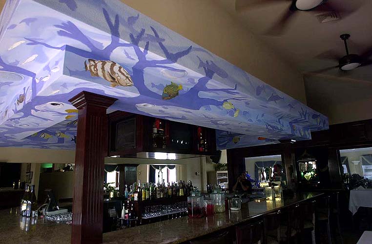 bar with it's many 600 gallon salt water fish tanks. We painted the