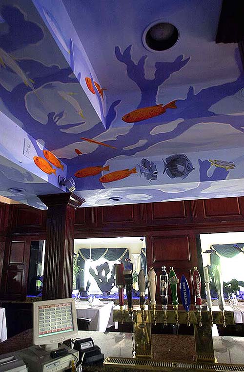 of some of the real coral that inspired us in the surrounding fish tanks.