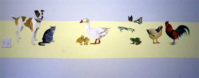 During the job the client asked Mary if she could add the household pets. The dog and cat on the left.